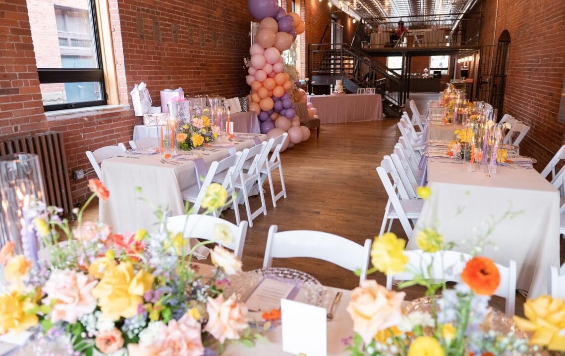Venue: The Art Room | Planner: Brittany Annes Events | Florist: May Chester Design | Confections: Tasty Bakery | Balloons: The Cheerful Balloon Company | Stationary: With Love Daily Designs | Caricature Artist: Dauphine Mulder