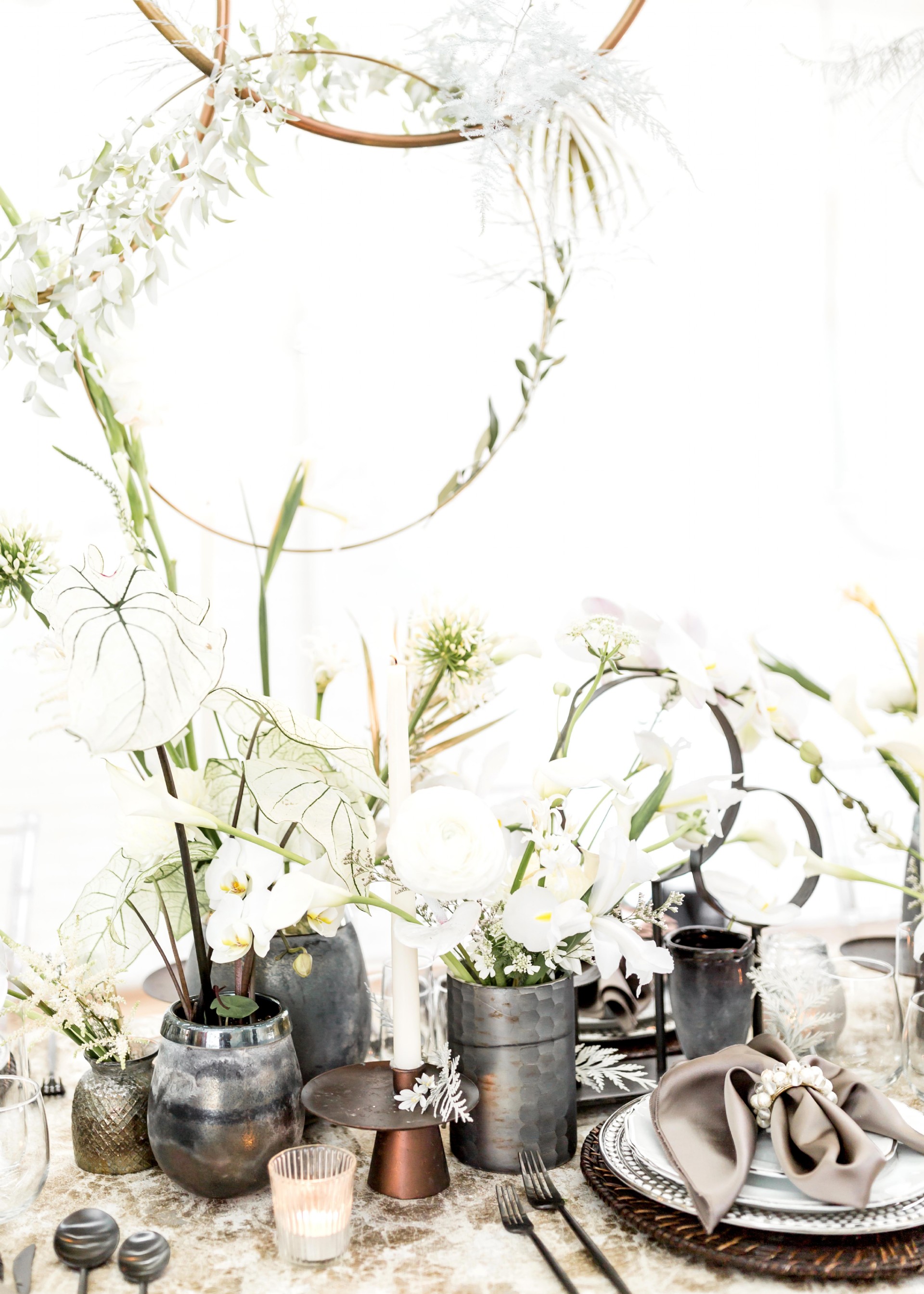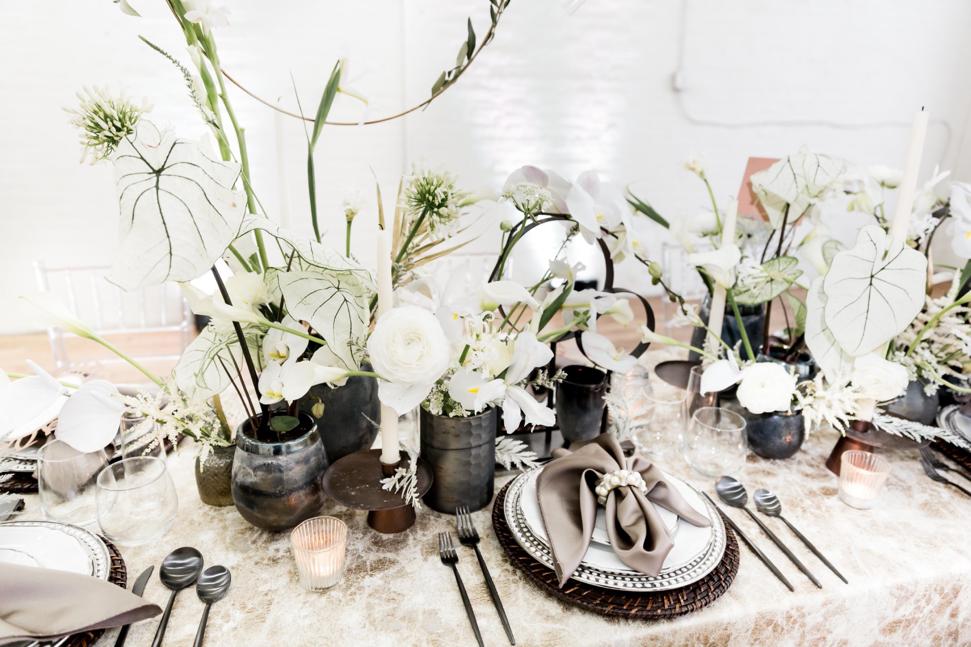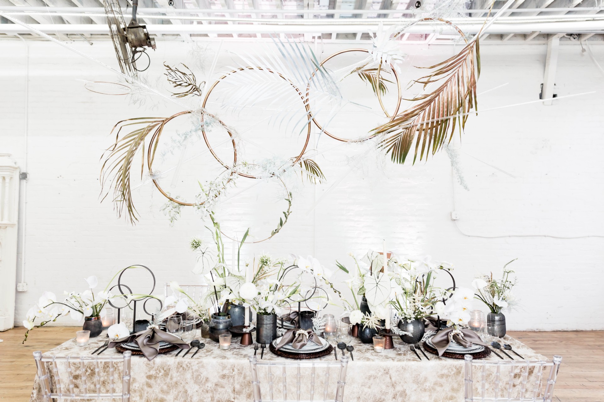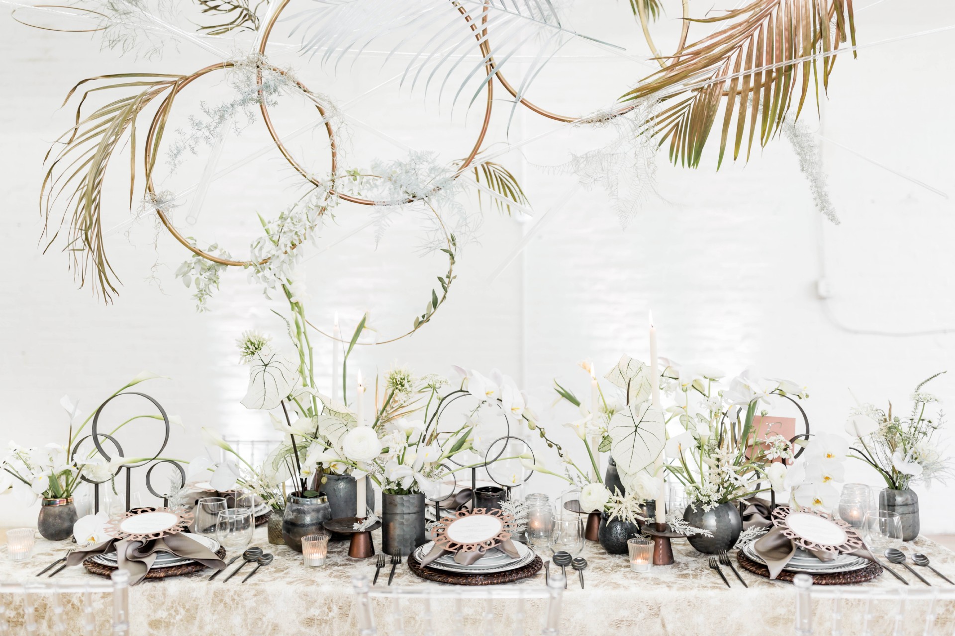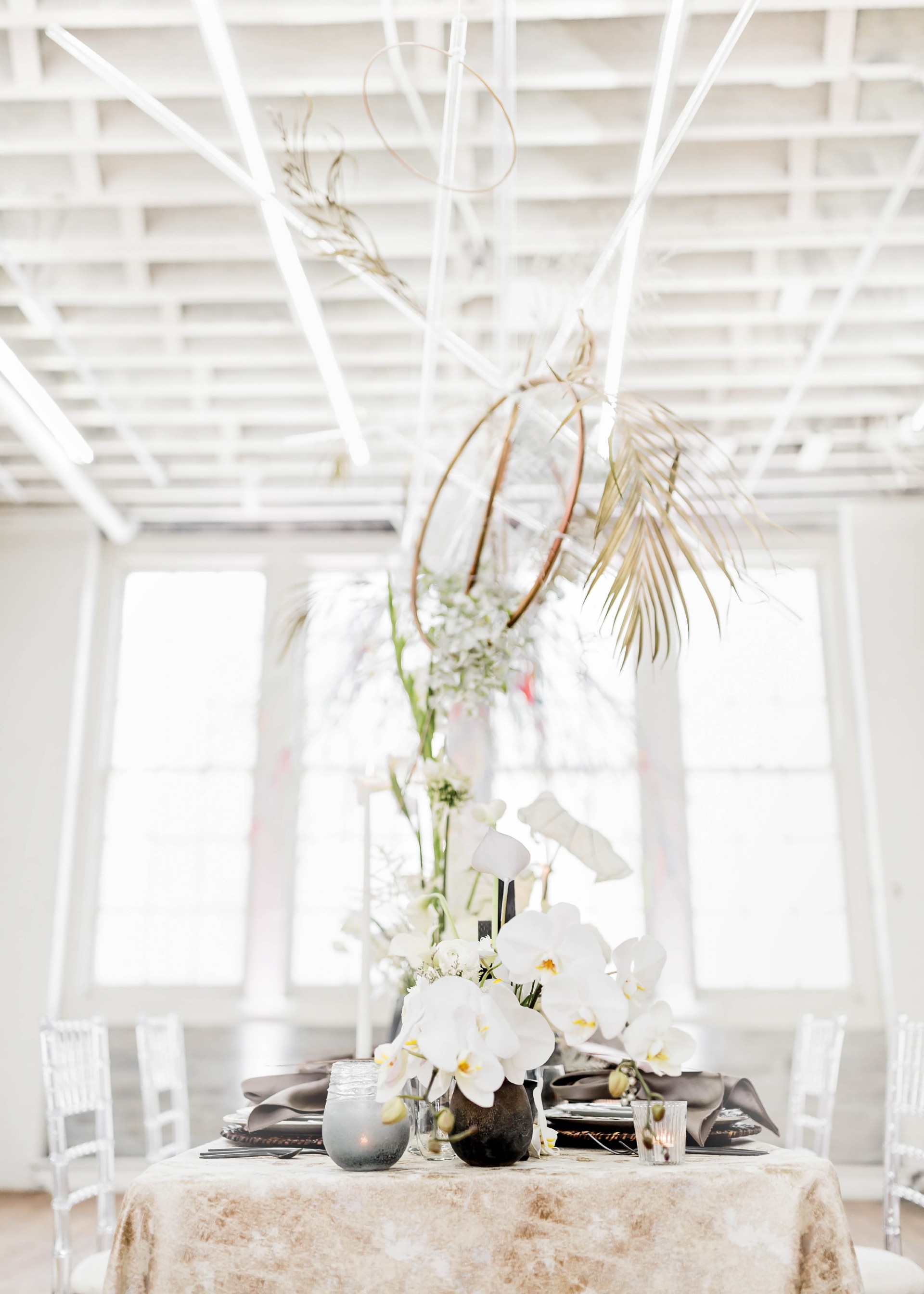 Venue: Hip at Flashlight Factory | Photographer: Sarah Casile Photography | Florist: greenSinner Floral | Stationary: Red Punch Design | Wardrobe: Luna Boutique | Rentals: Eventioneers | Rentals: Vintage Alley Rentals | Lighting: Ever Forward | Cake: Bella Christies | Bridal Accessories: Clarissa Boutique